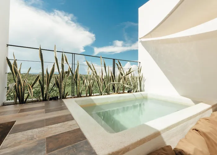 Elegant Duplex With Rooftop Jacuzzi In Tulum erbjuder gästerna ett komplett kök samt utomhusmatplats. Lägenheten erbjuder en avsvalkningspool och en terrass för gästernas bekvämlighet.